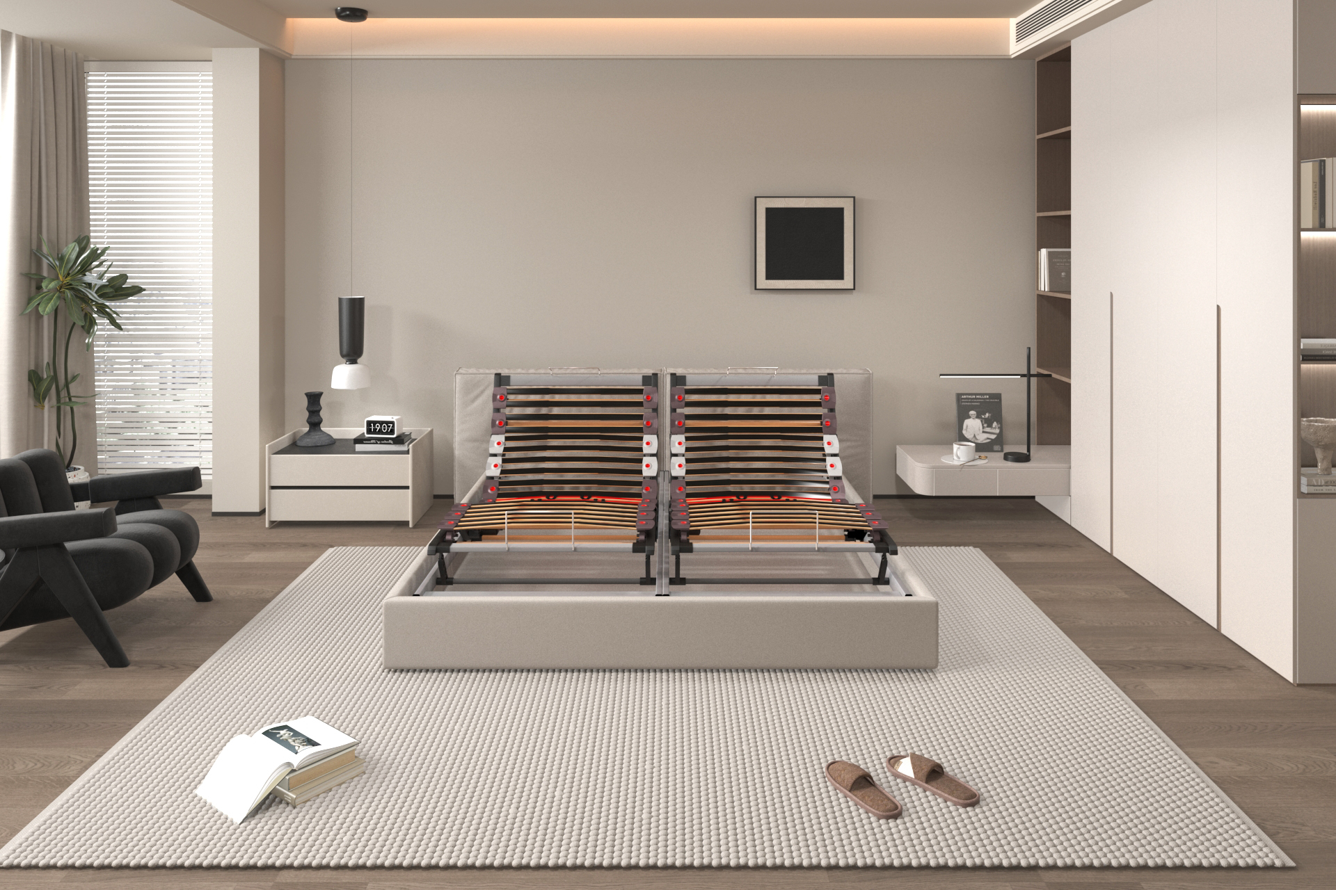 Еластичните легла на ламелите позволяват вертикално и осово движение, което помага на ламелите да се адаптират към извивките на тялото и да освобождават напрежението във всяка зона. Рамката е предназначена за безпружинни еластични матраци, при които чувствителността към опорното движение е най-забележима.