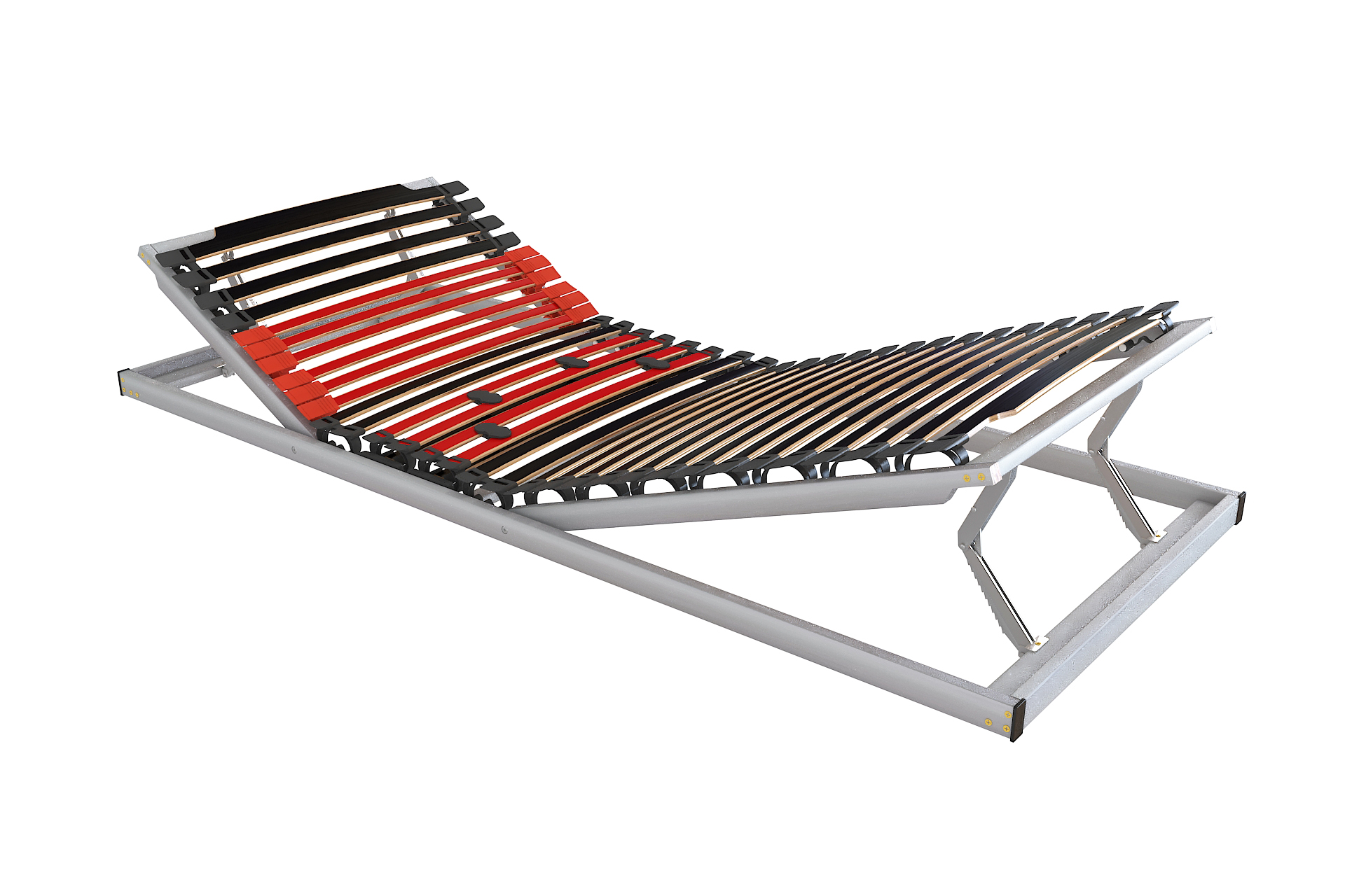 Повдигането на горната част осигурява естествена извивка на гръбначния стълб и комфортна позиция за четене и релаксация, докато мобилната зона при краката започва от областта на таза и поддържа целия крак равномерно, без огъване в колянната зона. Това подпомага кръвообращението и облекчава умората и напрежението в долните крайници.