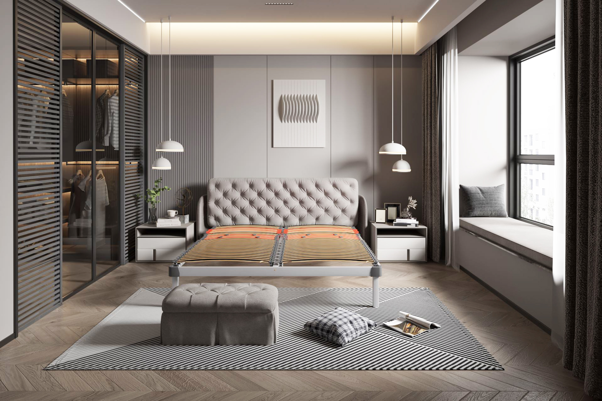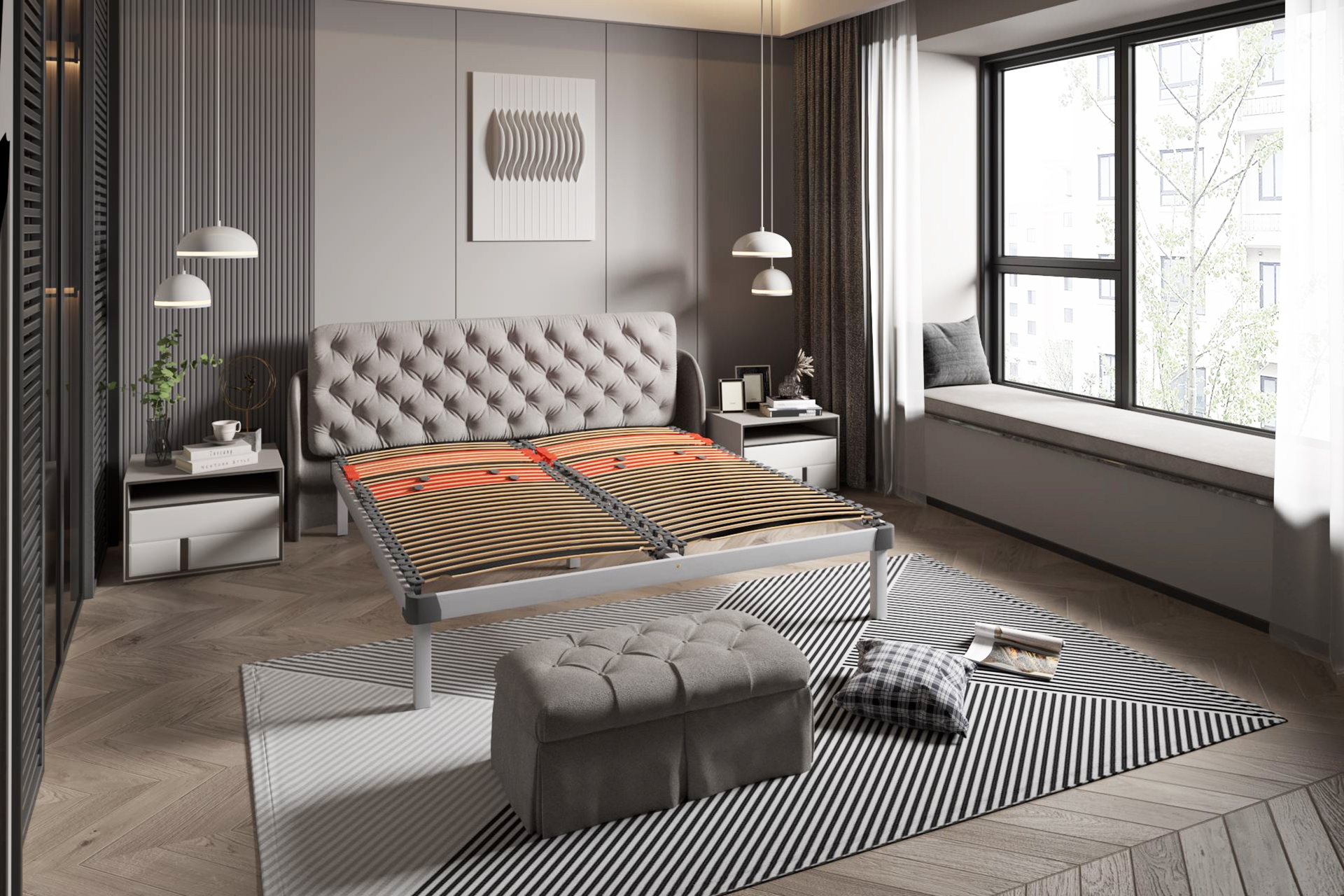 Еластичните обувки предотвратяват досега между матрака и твърда основа, а двустранното осово движение на ламелите осигурява плавна адаптация към извивките на тялото. Моделът предлага балансиран комфорт, луксозно усещане и дълготрайна устойчивост.