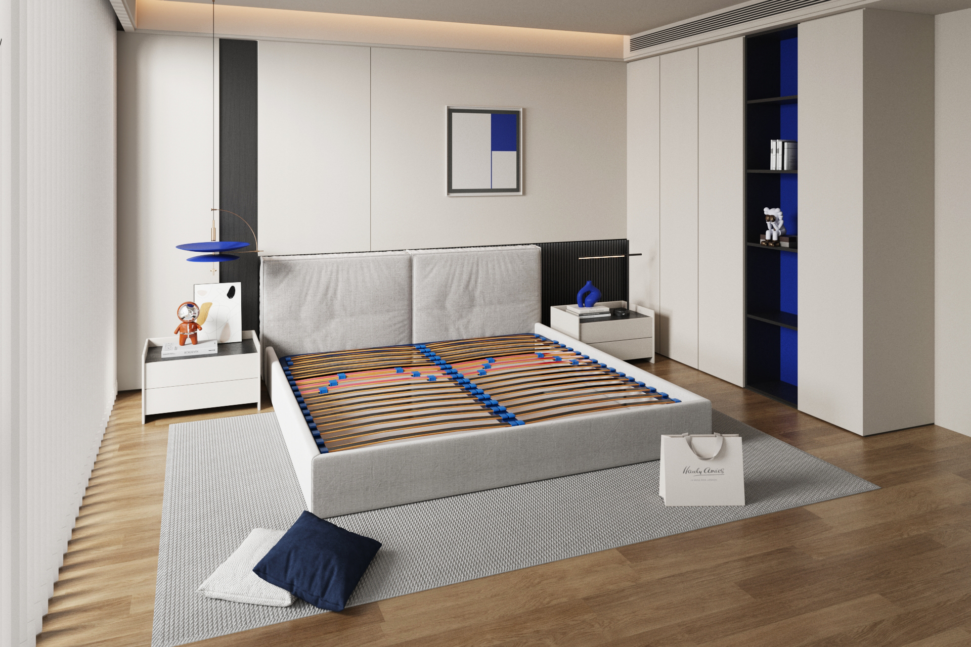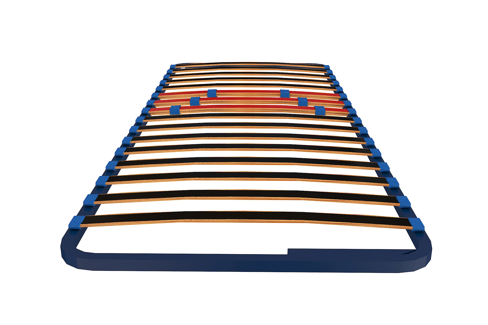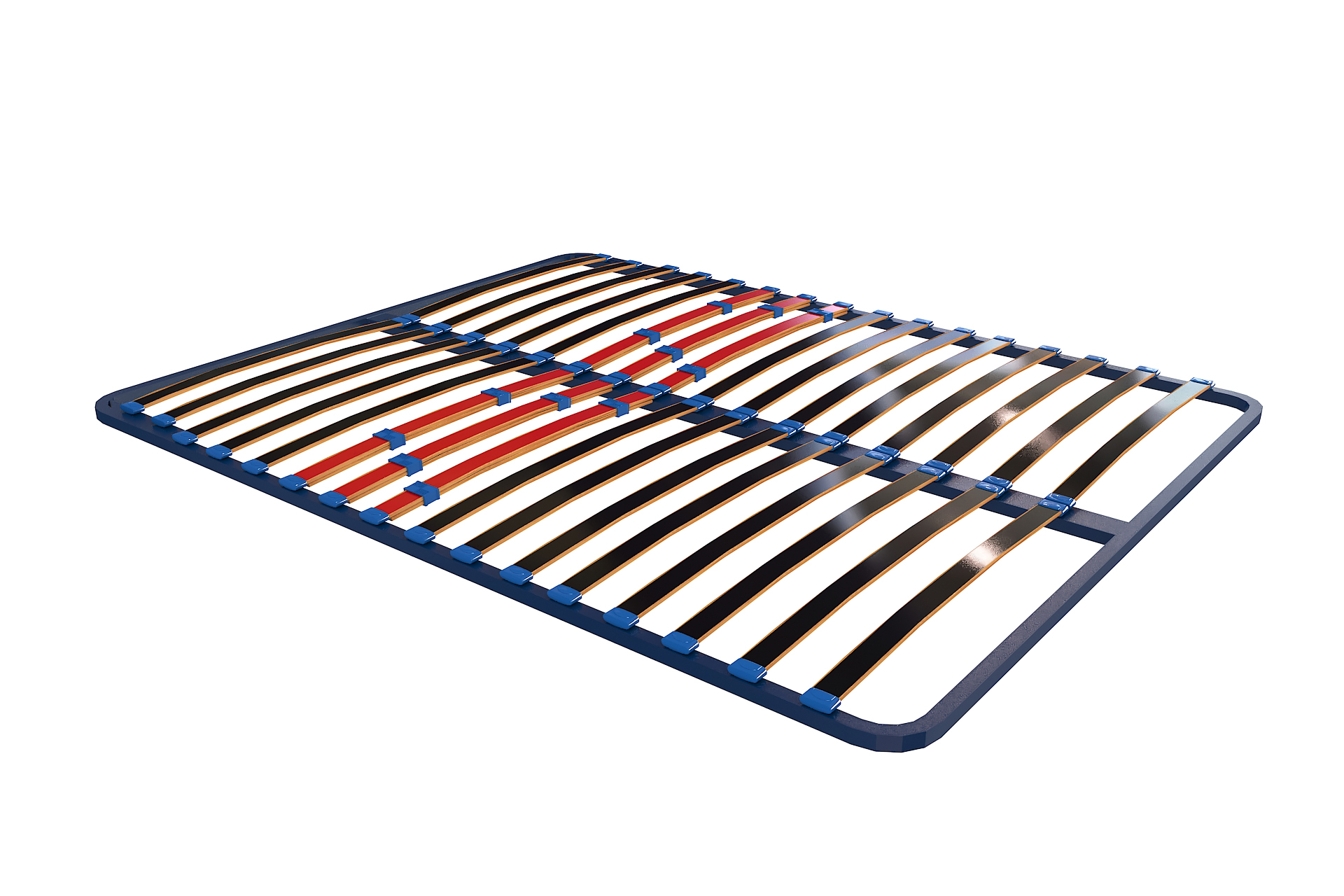 При по-големите размери се добавят допълнителни ламели за по-равномерно разпределение на натоварването. Рамката е боядисана с екологично чисто антикорозионно покритие. Монтирани са укрепващи планки за газови амортисьори, разпробити фабрично, което позволява лесно инсталиране на повдигащ механизъм. При рамки до 120 см повдигането е странично (напречно), а при размери от 140 см – надлъжно (крака–глава).