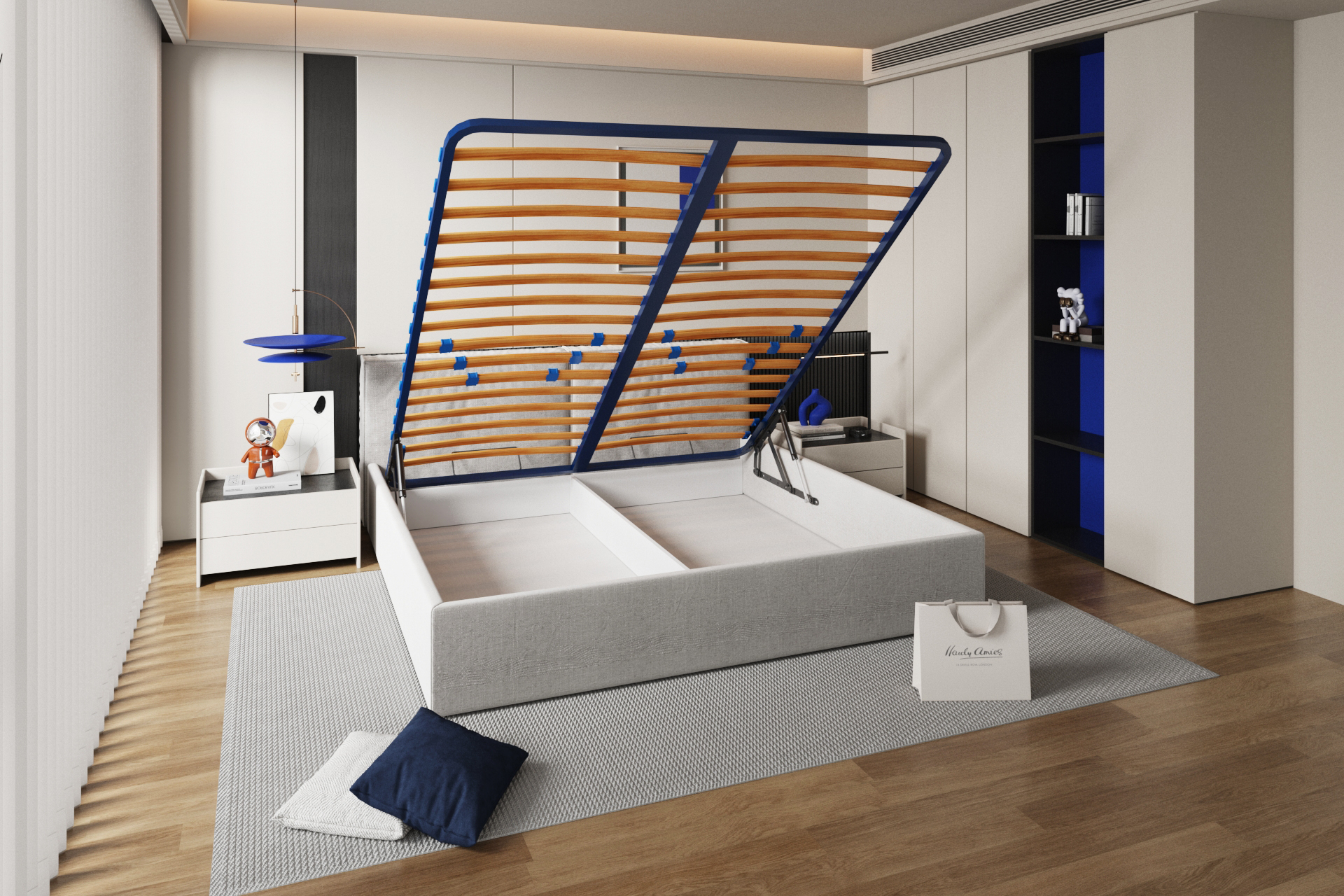 Благодарение на универсалния си дизайн, опцията осигурява лесен достъп до подматрачното пространство, което я прави идеално решение за съхранение на спално бельо, завивки или лични вещи. „Практик“ комбинира функционалност, удобство и съвременна технология, превръщайки рамката в пълноценен, ежедневен помощник.