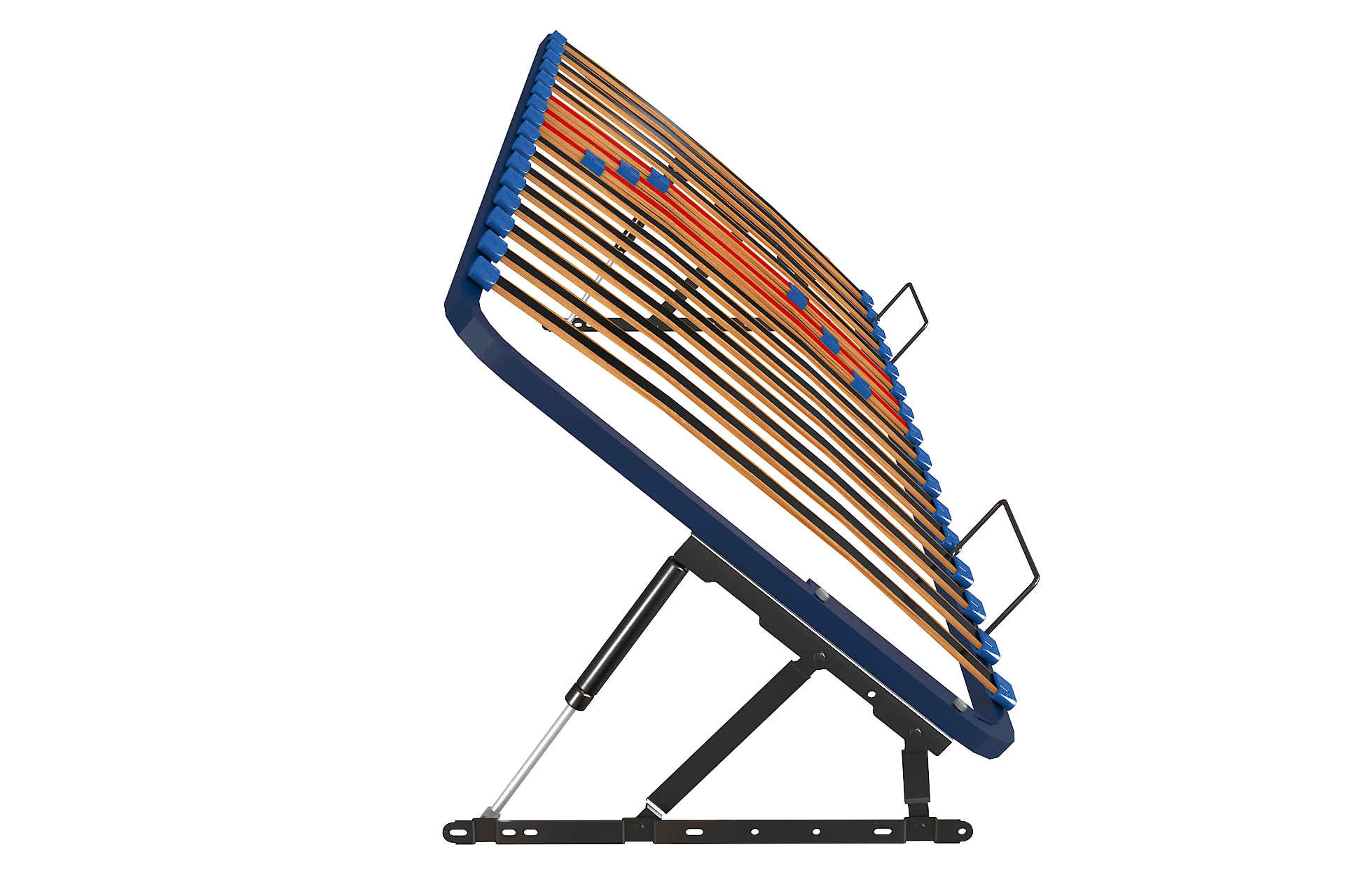 Опция „Практик“ превръща рамката в изключително удобно и функционално решение, подходящо за всякакъв тип легла. Тя включва два мощни, вградени амортисьора, монтирани директно в корпуса на рамката, всеки със сила от 400 нютона. Механизмът осигурява плавно, контролирано и леко повдигане на матрака, независимо от неговото тегло или структура. Най-голямото предимство е, че системата не изисква монтаж, пробиване или допълнителни инструменти — тя е готова за използване веднага.