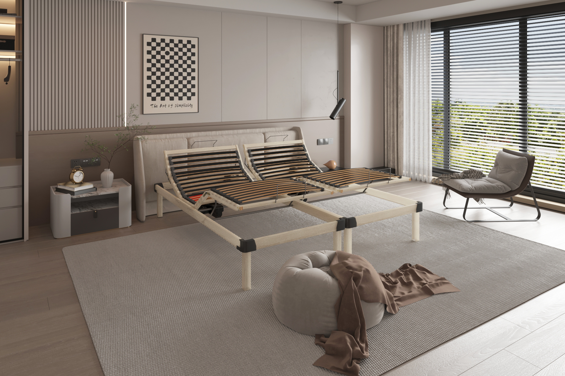 Подматрачната рамка Система Flex Matic Вариант е съвременно моторно решение, което комбинира адаптивната конструкция на серия Flex с удобството на свободно стоящо легло. Благодарение на стабилните крачета от букова дървесина (29 см), моделът може да се използва самостоятелно, без необходимост от легло или допълнителна конструкция. Моторната система осигурява плавно и безшумно регулиране на зоната на главата и краката, което позволява фино персонализиране на удобната позиция — за четене, гледане на телевизия, релакс, облекчение при умора на краката или позициониране при рефлукс.