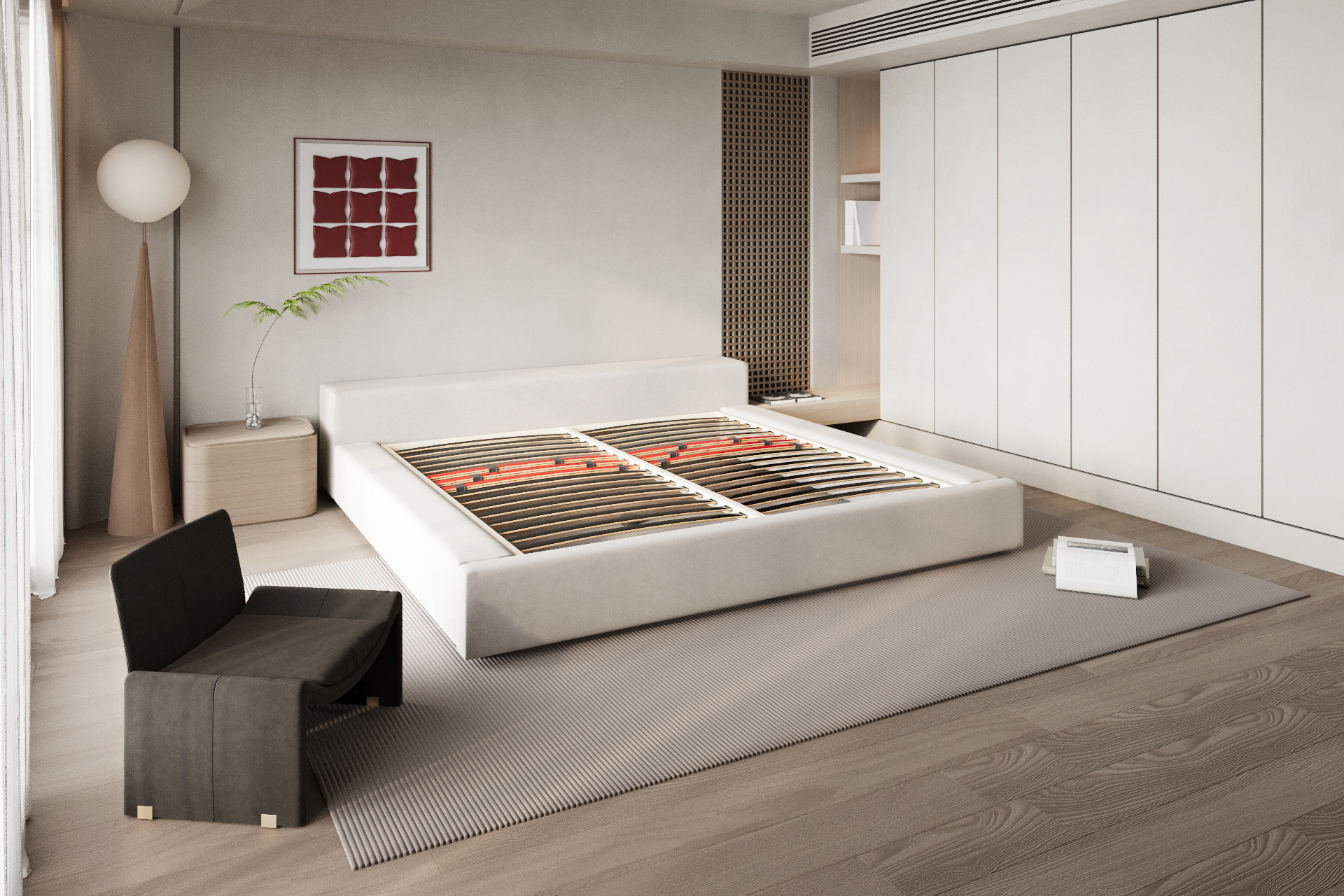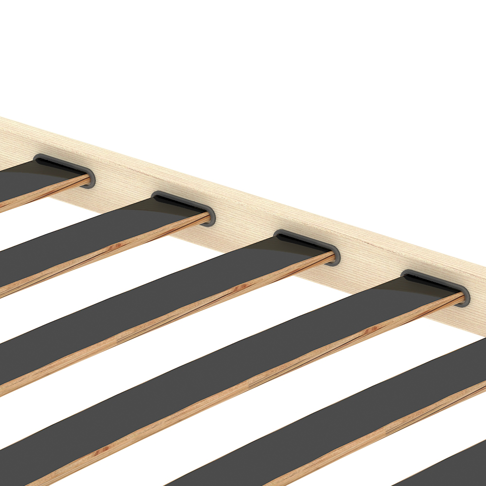 Леглата на ламелите са създадени от издръжлив материал, устойчив на износване, и осигуряват напълно безшумна работа на рамката.