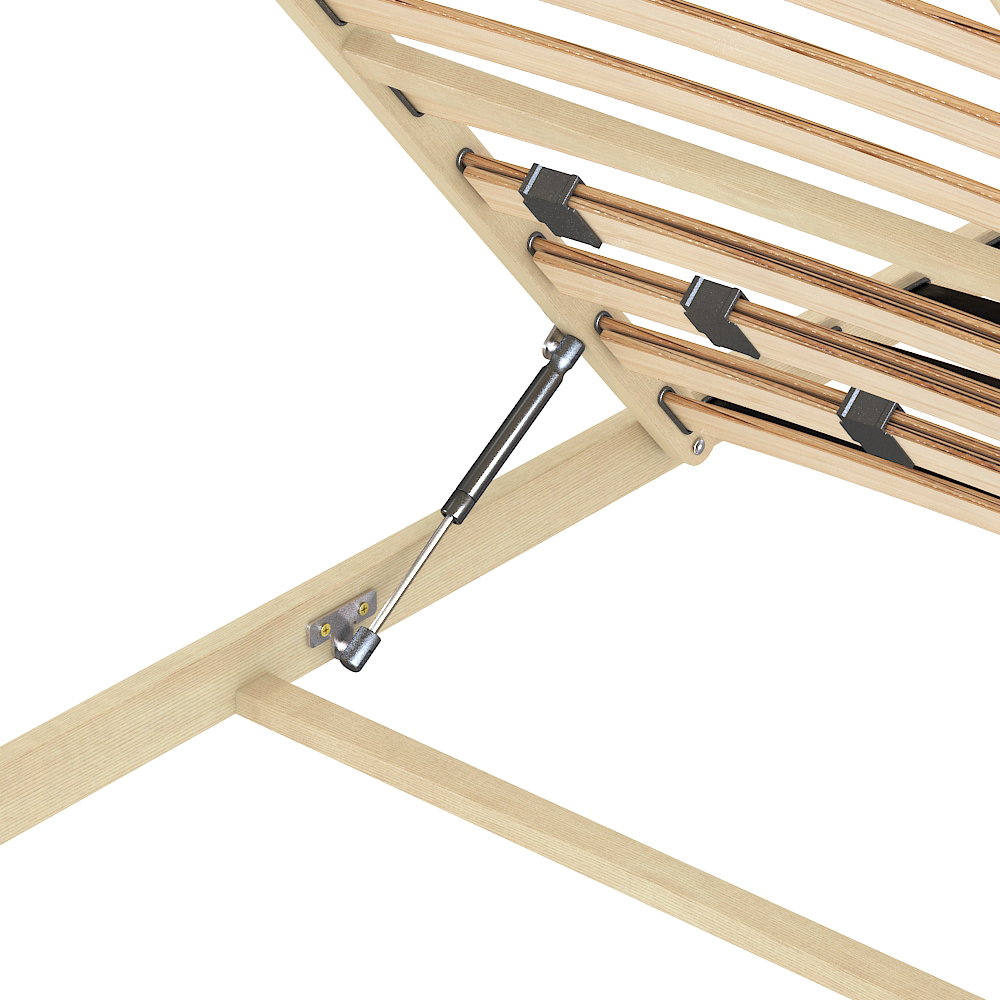 Механизмът разполага с фабрично вградени газови амортисьори, интегрирани в корпуса на рамката. Двата амортисьора, всеки със сила от 400 N, осигуряват плавно и леко повдигане на матрака, независимо от неговото тегло.