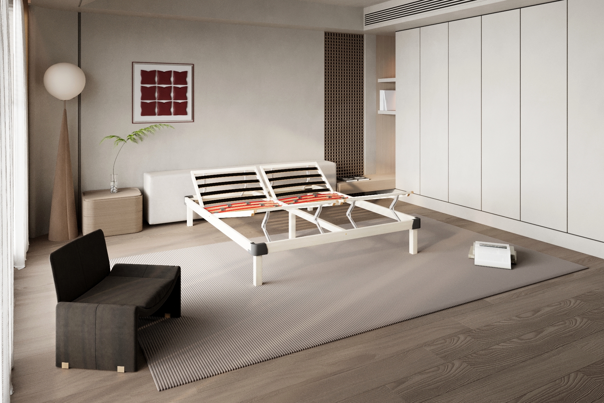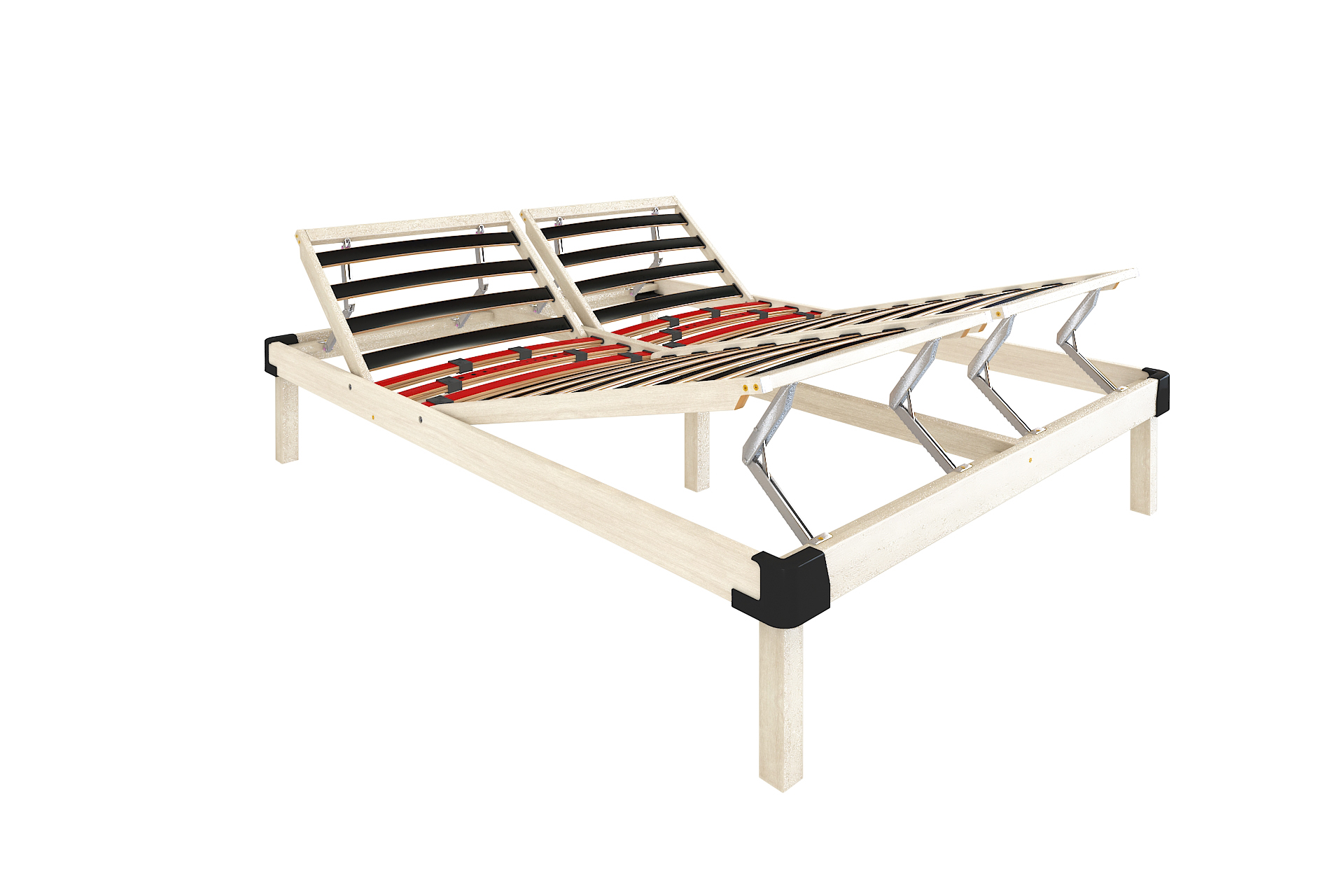 Опция P включва три двойни ламели в зоната на кръста с плъзгащи се регулатори, които позволяват персонално оформяне на по-мека или по-твърда лумбална зона. Системата подпомага правилното подравняване на гръбначния стълб, намалява напрежението в кръста и подобрява качеството на съня. При двойните рамки всяка страна може да бъде регулирана индивидуално.